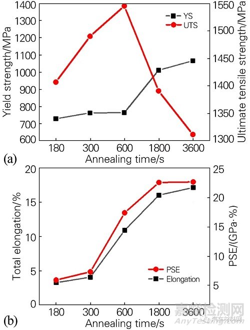 Fig.12 Mechanical properties of the Q&P steel under different austenitizing time[36]