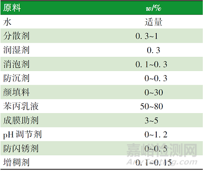 表1 水性丙烯酸防腐涂料的基礎(chǔ)配方