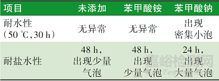表4 苯甲酸按與苯甲酸鈉對漆膜耐腐蝕性的影響