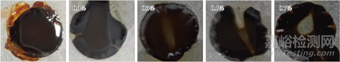 從圖7可以看出,隨著苯甲酸銨比例增加,基材表面閃銹減輕,說明苯甲酸銨的防閃銹性優(yōu)于BTA,和上述結(jié)果一致。