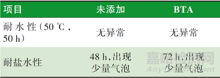 表5 BTA 對漆膜耐腐蝕性的影響