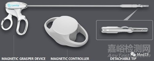 Levita Magnetic Surgical System由Magnetic grasper device (磁性抓鉗)、Magnetic controller (磁控制器)、Detachable tip三部分構(gòu)成。