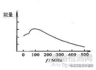 IEC 61000-4-2的 靜電放電的波形如圖2,可以看到靜電放電主要電流是一個上升沿在1nS左右的一個上升沿,要消除這個上升沿要求ESD保護器件響應(yīng)時間要小于這個時間。靜電放電的能量主要集中在幾十MHz到500MHz,很多時候我們能從頻譜上考慮,如濾波器濾除相應(yīng)頻帶的能量來實現(xiàn)靜電防護。其放電頻譜如下,這個圖是我自己畫的,只能定性的看,不能定量。