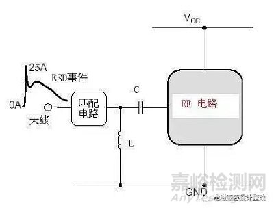 對于射頻天線的微波信號,如果用TVS管,壓敏等容性器件來做靜電防護,射頻信號會被衰減,因此要求TVS的電容很低,這樣增加ESD措施的成本。對于微波信號可以對地并聯(lián)一個幾十nH的電感來為靜電提供一個放電通道,對微波信號幾乎沒有影響,對于900MHZ和1800MHz的手機經(jīng)常用22nH的電感。這樣能把靜電主要能量頻譜上的能量吸收掉很多。