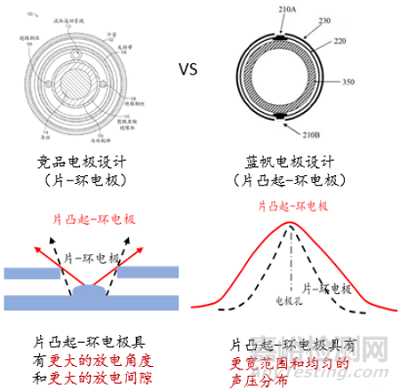 圖b:競品片-環(huán)裝電極和藍帆片凸起-環(huán)裝電極聲壓分布示意圖