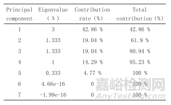 將表2中的數(shù)據(jù)進行主成分分析,獲得初始和累積特征值和主成分系數(shù)矩陣,表3為初始和累積特征值。