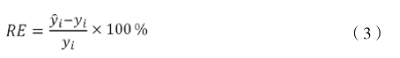 選用相對誤差(Relative Error, RE)指標來評估模型預(yù)測值與實測值之間的差距。計算公式為: