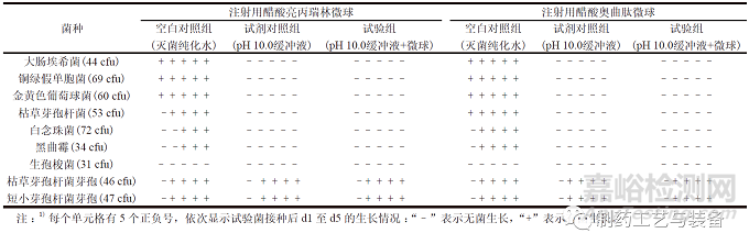 表4 pH 10.0 緩沖液溶解注射用微球代表性品種后無菌檢查方法的適用性試驗(yàn)結(jié)果1)