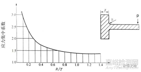 圖1 零部件圓角與應(yīng)力集中系數(shù)的關(guān)系
