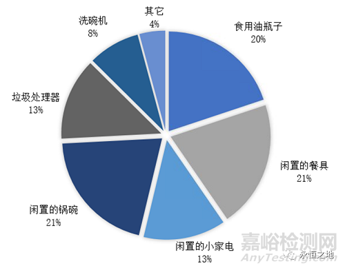 凈水器一般安裝在廚房的櫥柜里面。根據(jù)售后安裝維修系統(tǒng)上傳的安裝圖片分析,樣本數(shù)量為1000個,用戶安裝凈水機(jī)的周邊放置的物品主要是閑置的餐具、鐵鍋、食用油瓶子、垃圾處理器等,其它物品占比4%(如清潔劑等),可見環(huán)境復(fù)雜。