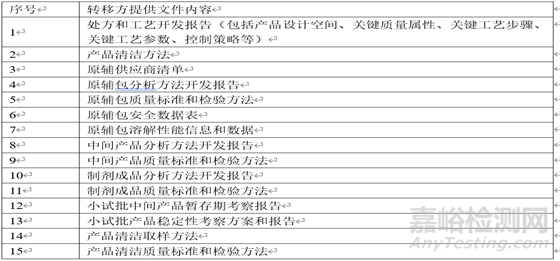 表1:轉(zhuǎn)移方需提供的技術(shù)文件