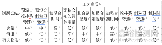 表4:濕法制粒工藝工藝參數(shù)風(fēng)險(xiǎn)評估