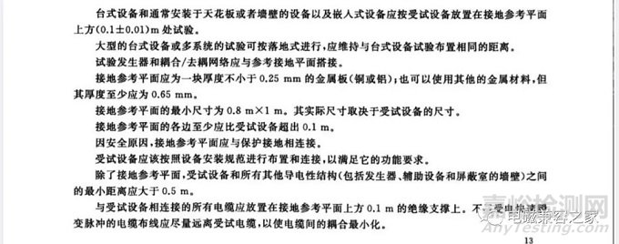 首先我們可以肯定地說,沒有這個(gè)木墊,是可以做實(shí)驗(yàn)的,這個(gè)木墊的作用,僅僅是為了將測(cè)試條件統(tǒng)一,以方便失效后的重現(xiàn)。當(dāng)EUT架在10cm的非導(dǎo)體物質(zhì)上后,EUT及其附屬線材對(duì)地面的復(fù)雜電容就基本確定了,不會(huì)改變。也可以這樣來理解:統(tǒng)一測(cè)試布置,防止到其他實(shí)驗(yàn)室測(cè)試又出現(xiàn)不同的測(cè)試結(jié)果,都規(guī)定在這么高的臺(tái)子上,可以提高一致性。出現(xiàn)異常也好比較和分析。