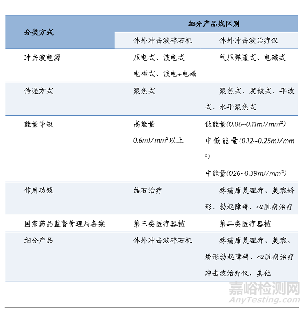 圖表1 沖擊波技術(shù)的分類(市場(chǎng)上主流的沖擊波醫(yī)療器械產(chǎn)品)