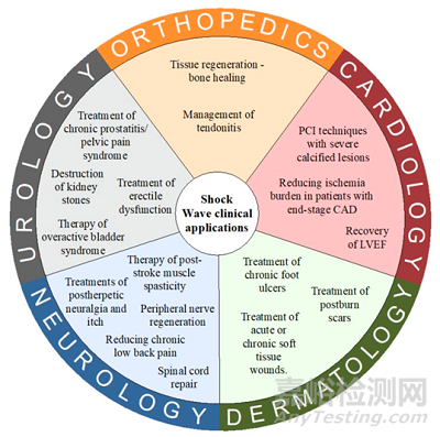 沖擊波技術(shù)在醫(yī)療行業(yè)多個(gè)科室均有所應(yīng)用,如圖所示,主要包括泌尿外科、骨科、心內(nèi)科、皮膚科等。