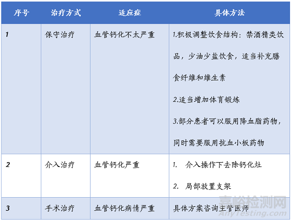 血管鈣化疾病包括有冠脈鈣化、外周血管鈣化和瓣膜鈣化,其治療可分為保守治療、介入治療、手術(shù)治療,具體如下: