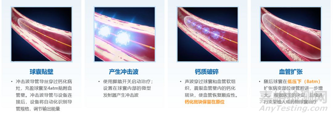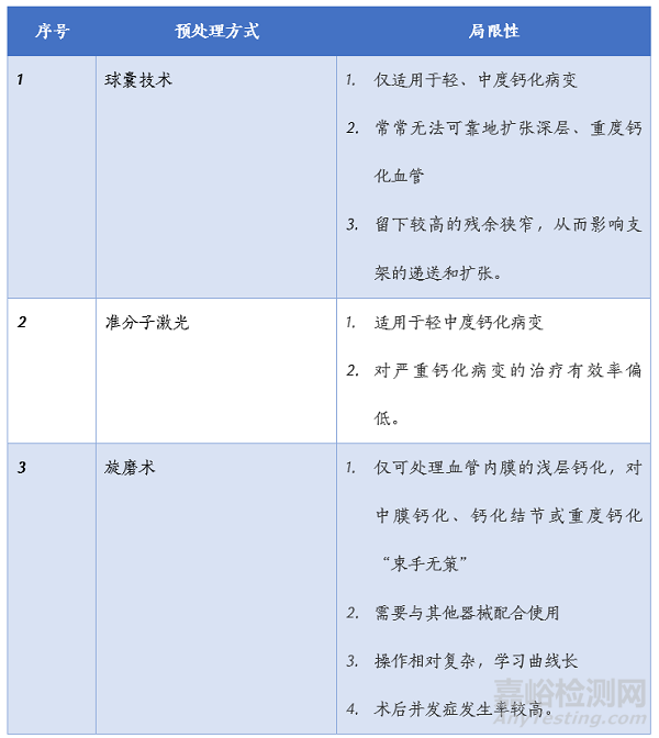 由于某些鈣化病變的血管段較為堅(jiān)硬,順應(yīng)性較差,導(dǎo)致介入相關(guān)器械通過鈣化病變部位的難度較大,增加了介入手術(shù)相關(guān)并發(fā)癥的風(fēng)險(xiǎn),如介入器械不能到達(dá)病變位置、支架脫落、導(dǎo)絲斷裂、支架縱向壓縮等,最終也會(huì)影響治療效果。因此,傳統(tǒng)的預(yù)處理鈣化方式(球囊技術(shù)、切割球囊、斑塊旋磨技術(shù)、準(zhǔn)分子激光等)就出現(xiàn)了局限性和相關(guān)并發(fā)癥多等問題。