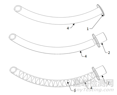 產(chǎn)品為帶有凸緣端的通氣道,通常由高分子材料聚氯乙烯(PVC)、丙烯腈-丁二烯-苯乙烯共聚物(ABS)、硅橡膠等材質(zhì)制成。應(yīng)明確產(chǎn)品的結(jié)構(gòu)及組成,包括附件,并提供相應(yīng)的結(jié)構(gòu)圖示。在圖示中標(biāo)識(shí)各部件的名稱、重要尺寸信息及測(cè)量位置。常見產(chǎn)品如圖1、圖2。