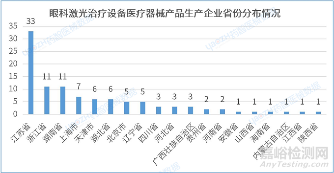 3.2眼科激光治療設(shè)備醫(yī)療器械產(chǎn)品生產(chǎn)企業(yè)省份分布情況