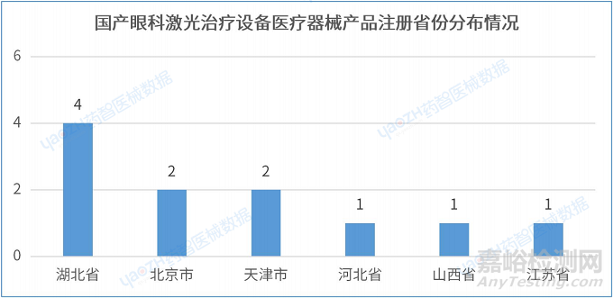 2.5國產(chǎn)眼科激光治療設(shè)備醫(yī)療器械產(chǎn)品注冊省份分布情況