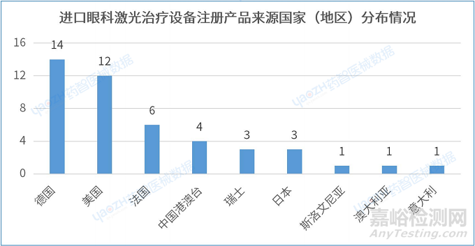 2.7進(jìn)口眼科激光治療設(shè)備醫(yī)療器械注冊產(chǎn)品來源國家分布情況