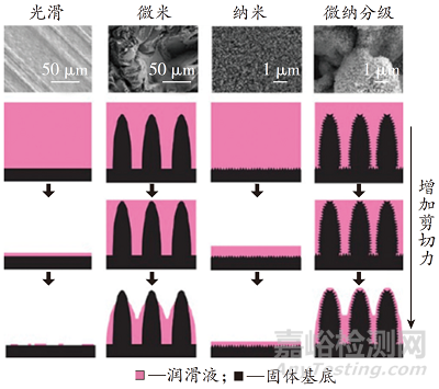 Fig.2 Schematic diagram of contact between external liguid, lubricant and solid roughsubstrate in different states