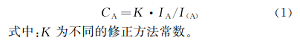 試樣中A元素的相對(duì)含量CA與該元素產(chǎn)生的特征X射線計(jì)數(shù)強(qiáng)度IA成正比。在相同的分析條件下,同時(shí)測量試樣和標(biāo)準(zhǔn)試樣中A元素的特征X射線計(jì)數(shù)強(qiáng)度I(A),經(jīng)過修正計(jì)算,可以得出試樣中A元素的相對(duì)百分含量CA,計(jì)算方法如式(1)所示。