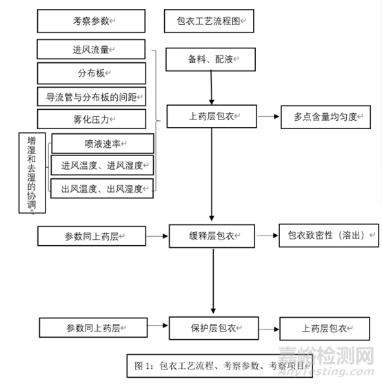 包衣微丸工藝流程圖、需要考察的參數(shù)及考察項(xiàng)目見下圖。