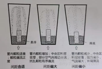 圖4:導(dǎo)流管與分布板間距對(duì)流化狀態(tài)的影響
