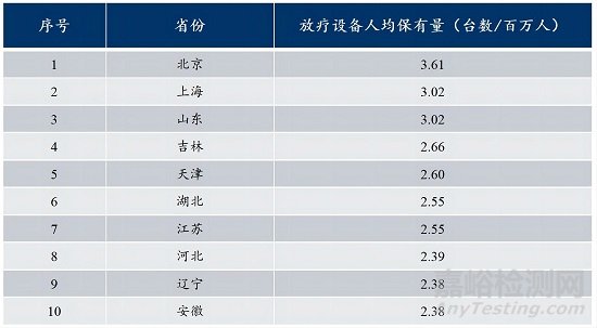 同時(shí),我國(guó)放療設(shè)備人均保有量地域不均衡問(wèn)題非常突出,資源主要集中于一二線城市。據(jù)不完全統(tǒng)計(jì),截至2022年12月31日,我國(guó)約7個(gè)省份放療設(shè)備百萬(wàn)人口保有量超過(guò)全國(guó)平均水平,最多為北京市3.61臺(tái),其次分別為上海和山東3.02臺(tái);保有量最低的分別為云南、寧夏和西藏,不足1臺(tái)。我國(guó)放療設(shè)備保有量前十省份如下: