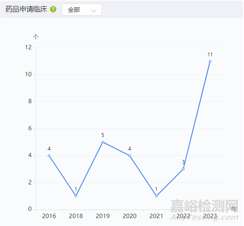 圖3 長(zhǎng)沙市藥品申請(qǐng)臨床數(shù)量情況