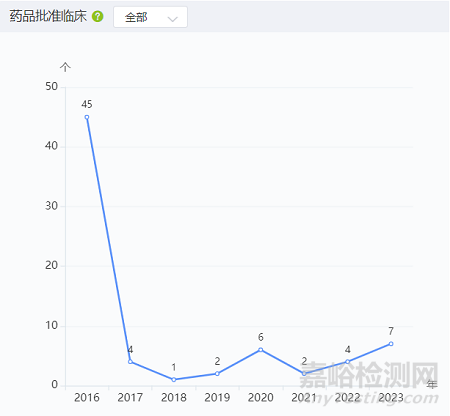 圖4 長(zhǎng)沙市藥品批準(zhǔn)臨床數(shù)量情況