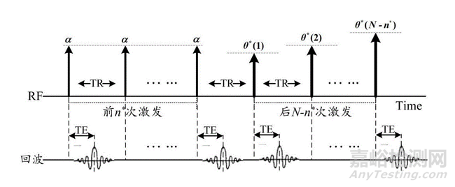 本方法首次提出了一種基于定-變角優(yōu)化激發(fā)的超極化磁共振成像算法,該方法綜合利用了定角激發(fā)和變角激發(fā)方法的優(yōu)點(diǎn),能彌補(bǔ)其相應(yīng)的不足,因此這種快速成像方法可以獲得更高信噪比的MR信號(hào),其重建的MR圖像質(zhì)量更佳;由于本方法主要分為三個(gè)階段,首先利用定角激發(fā)方法采集超極化MR信號(hào),其次采用變角激發(fā)方法采集超極化MR信號(hào),最后根據(jù)所述采集的MR信號(hào)進(jìn)行超極化磁共振圖像重建,能有效彌補(bǔ)采用單一小角度激發(fā)方法的不足。由于本方法在定角激發(fā)階段,通過(guò)最優(yōu)化MR信號(hào)的SNR,獲得定角激發(fā)的最優(yōu)化步數(shù),避免FID幅值的過(guò)度損失,緩解MR圖像失真效應(yīng)。由于本方法在變角激發(fā)階段,通過(guò)定角激發(fā)和變角激發(fā)所滿足的橫向磁化矢量強(qiáng)度關(guān)系式確定變角激發(fā)方法的初始角度,校正MR圖像偽影效應(yīng)。有效地彌補(bǔ)小角度激發(fā)方法所存在的不足,提高了超極化磁共振的成像速度和MR圖像質(zhì)量。