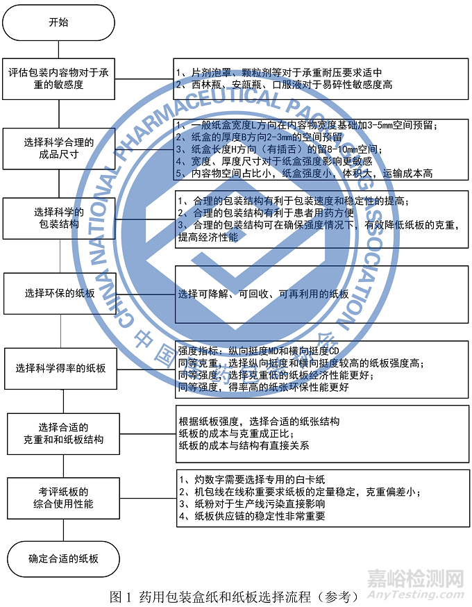 圖 1 藥用包裝盒紙和紙板選擇流程(參考)