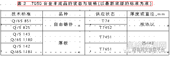7050合金的不同狀態(tài)分別適用于不同使用條件的受力構(gòu)件:T76狀態(tài)材料用于要求抗剝落腐蝕、高強(qiáng)度的結(jié)構(gòu)件;T74材料適用于高強(qiáng)度、抗應(yīng)力腐蝕結(jié)構(gòu)件,特別是厚大截面結(jié)構(gòu)件;T73線材主要用于高強(qiáng)度、抗腐蝕的鉚釘。