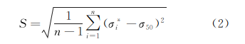 疲勞極限子樣標(biāo)準(zhǔn)差S 的計(jì)算方法如式(2)所示。