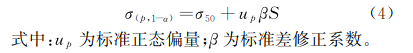 在已知置信度1-α、存活率p和變異系數(shù)Cv的條件下,通過查表可知升降法對(duì)子總數(shù)是否符合最少觀測(cè)數(shù)要求,如不符合則須增加試驗(yàn)對(duì)子數(shù),如符合則安全疲勞極限σ(p,1-α)的計(jì)算方法如式(4)所示。