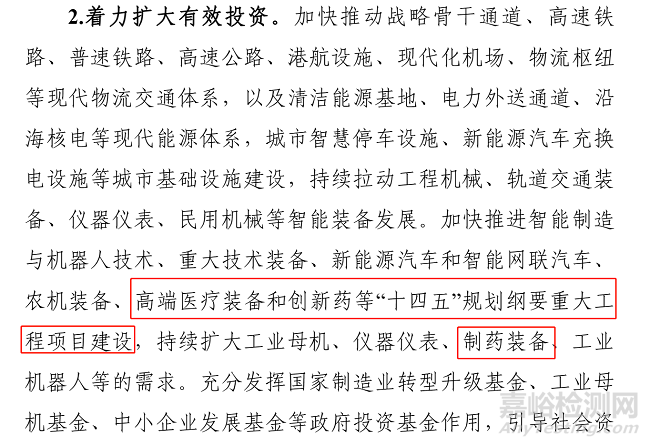 在著力擴(kuò)大有效投資方面?!斗桨浮诽岢黾涌焱七M(jìn)智能制造與機(jī)器人技術(shù)、重大技術(shù)裝備、新能源汽車和智能網(wǎng)聯(lián)汽車、農(nóng)機(jī)裝備、高端醫(yī)療裝備和創(chuàng)新藥等“十四五”規(guī)劃綱要重大工程項(xiàng)目建設(shè),持續(xù)擴(kuò)大工業(yè)母機(jī)、儀器儀表、制藥裝備、工業(yè)機(jī)器人等的需求。