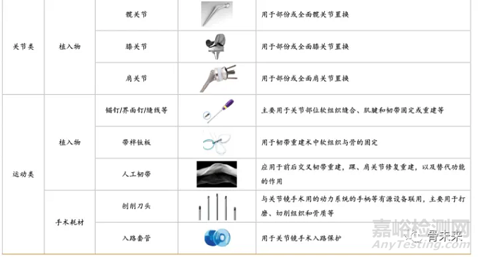 關節(jié)類植入物產品主要指實現(xiàn)因關節(jié)周圍骨折、累計關節(jié)的骨腫瘤及其他原因引起的骨缺損等關節(jié)障礙的關節(jié)功能重建的人體植入物,主要產品可分為人工膝關節(jié)、髖關節(jié)和肩關節(jié)以及小關節(jié)等。