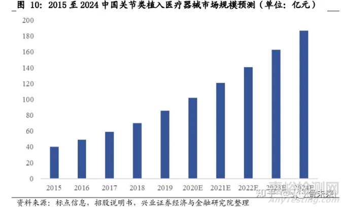 根據標點信息的相關研究報告,以 2019 年 86 億元為基數(shù),預計到 2024 年我國關節(jié)類植入器械市場規(guī)模在 187 億元左右,未來 5 年的復合增長率 16.87%左 右。關節(jié)類植入醫(yī)療器械仍將保持細分行業(yè)中相對較快的增速發(fā)展。