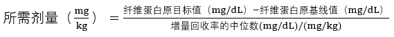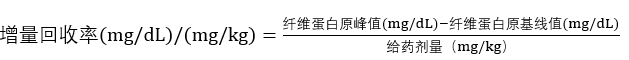 增量回收率,由輸注結(jié)束后纖維蛋白原的峰值水平(cmax)計(jì)算得出,單位為[mg/dL]/[mg/kg],其計(jì)算方法如下: