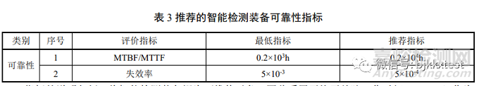 智能檢測裝備的可靠性指標應符合產(chǎn)品標準的要求,如沒有產(chǎn)品標準,可參考表3選擇可靠性指標。