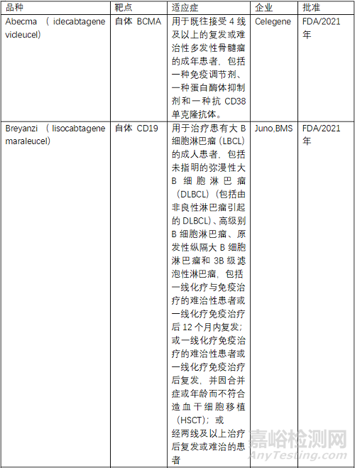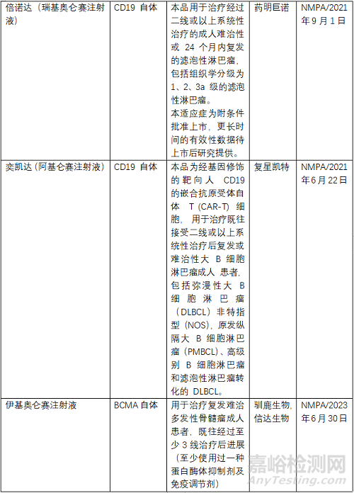 三、已上市CAR-T細(xì)胞治療產(chǎn)品