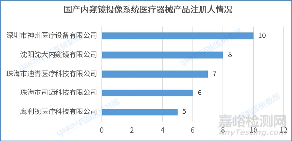 2.6 國(guó)產(chǎn)內(nèi)窺鏡攝像系統(tǒng)醫(yī)療器械產(chǎn)品注冊(cè)人情況(top5)
