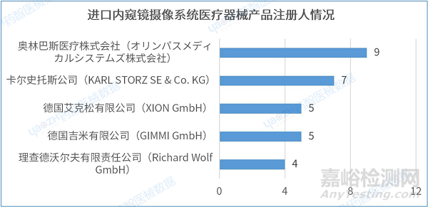 2.8 進(jìn)口內(nèi)窺鏡攝像系統(tǒng)醫(yī)療器械產(chǎn)品注冊(cè)人情況