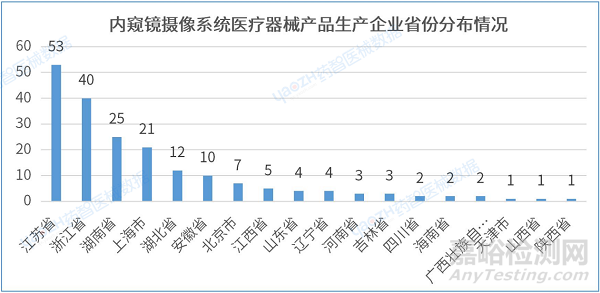 3.2 內(nèi)窺鏡攝像系統(tǒng)醫(yī)療器械產(chǎn)品生產(chǎn)企業(yè)省份分布情況