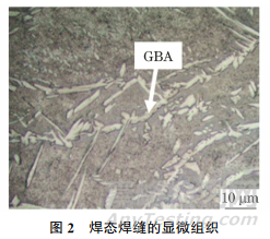 由圖2可見,焊態(tài)焊縫的顯微組織以鐵素體為主,奧氏體體積分?jǐn)?shù)約為16.32%。這是因?yàn)榧す夂改芰枯斎胼^低且冷卻速率較快,鐵素體向奧氏體轉(zhuǎn)變不充分。焊縫中少量的奧氏體主要以晶界奧氏體(GBA)的形式存在,這是因?yàn)榫Ы缣幘哂懈叩淖杂赡?,有利于奧氏體的優(yōu)先形核。