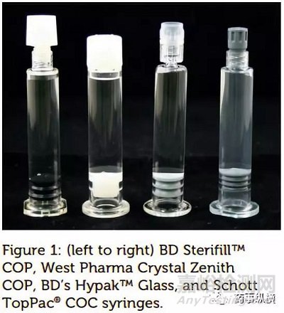 法規(guī)對生物制品的要求推動了預充針的創(chuàng)新。雖然I型玻璃仍然是注射器常用的材料,但塑料注射器也越來越受歡迎,包括環(huán)烯烴聚合物(COP)、環(huán)烯烴共聚物(COC)、聚丙烯(PP)和聚碳酸酯(PC)。在日本,50%的注射器是塑料的。聚合物注射器無菌、隨時可用、具有玻璃外觀(圖1),并且耐磨損。