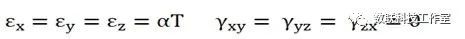對于大多數(shù)材料而言,升溫引起膨脹,降溫引起收縮;我們假設(shè)應(yīng)變于溫度呈線性關(guān)系,且只引起正應(yīng)變而不引起剪應(yīng)變,即: