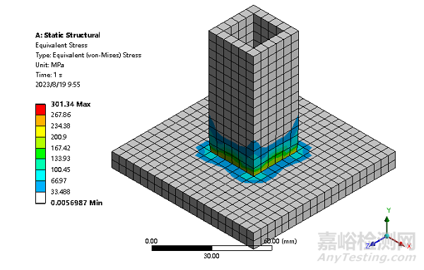 根據(jù)截圖可以非常明顯看出,綁定約束限制住熱膨脹變形,應(yīng)力集中,而把接觸修改為無摩擦接觸后,應(yīng)力集中現(xiàn)象沒有了。